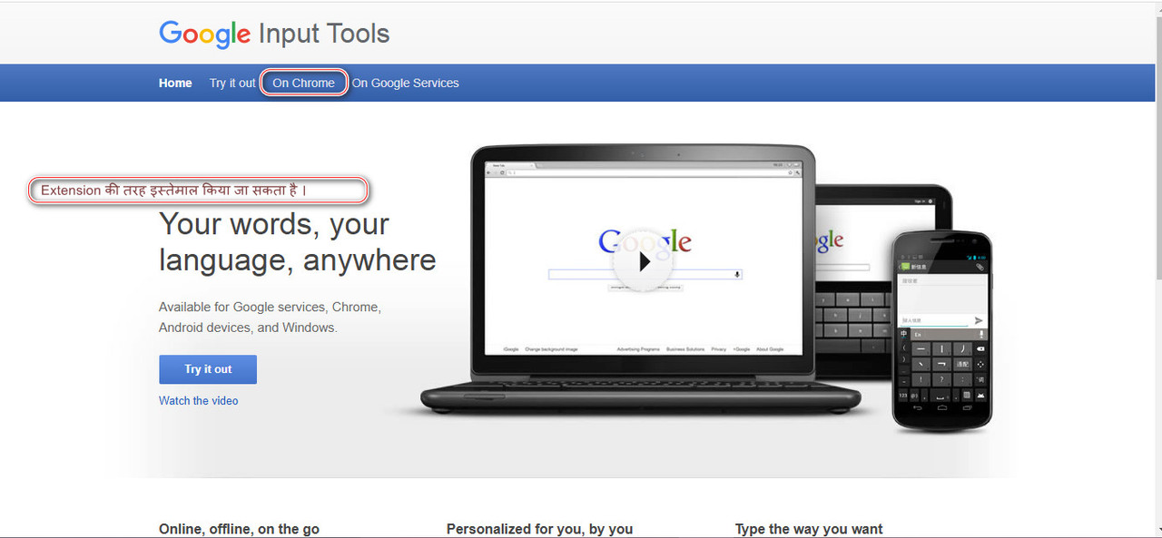 अब आप इसके वैबसाइट पर जाएँ तो आपको ऐसा इंटरफ़ेस दिखेगा। या सीधे ब्राउज़र मे जाकर टाइप कीजिये और किसी डॉकयुमेंट मे डालना हो तो कट - पेस्ट या कॉपी - पेस्ट का इस्तेमाल करें